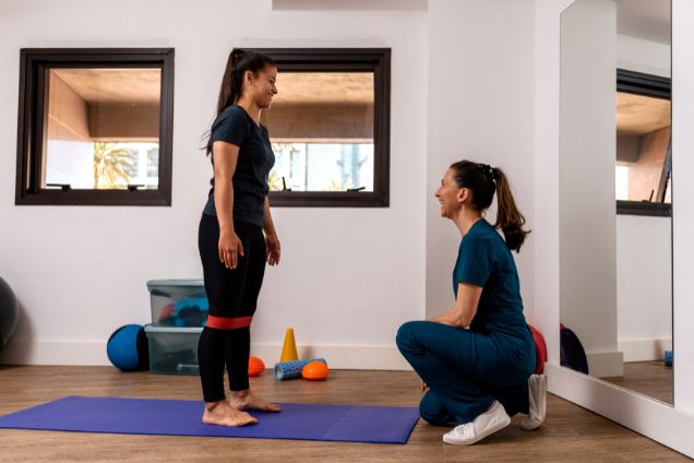 Next, your therapist watches you move — checking mobility, strength, balance, and mechanics. Simple tests like squats, lunges, or sport-specific motions help identify what’s improving and what still needs focused work.